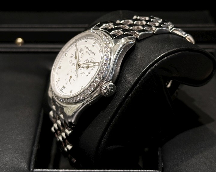 錶徑 原鑲鑽圈52顆鑽石+12顆時標鑽 年曆