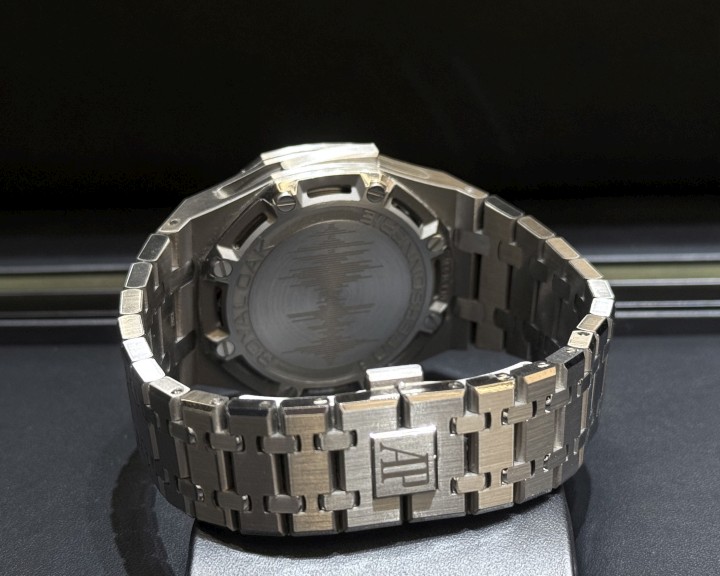 八角形皇家橡樹設計外圈 / 錶殼、鏈帶皆為 鈦合金 材質 / 白金指針、時標 / 藍寶石水晶玻璃鏡面 / 愛彼 2953 手動上鍊機芯 |