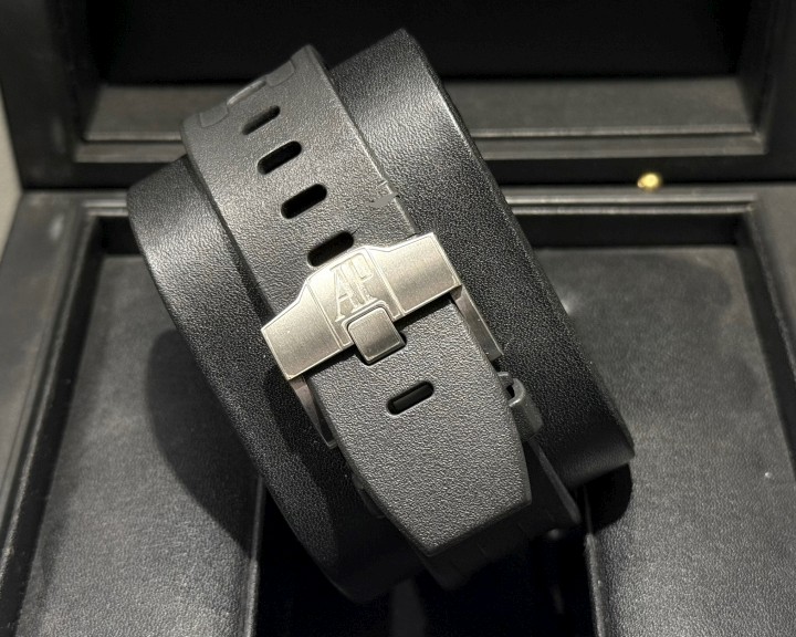 八角形皇家橡樹設計外圈 / 錶殼、穿扣皆為 不鏽鋼 材質 / 原廠橡膠錶帶 / 夜光指針、立體柱狀時標 / 藍寶石水晶玻璃鏡面 / 愛彼3120自動上鍊機芯 |